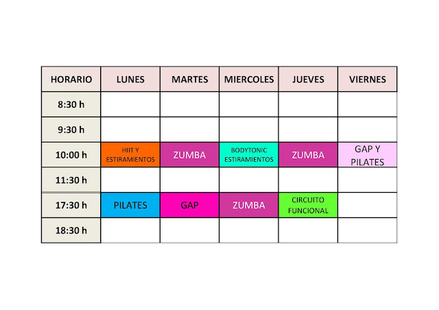 HORARIO de CLASES COLECTIVAS (Semana del 16 al 20 de Diciembre)